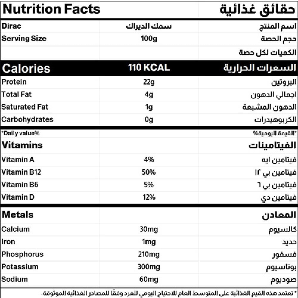 مميزات شريحة سمك الديراك (كنعد) الطازج